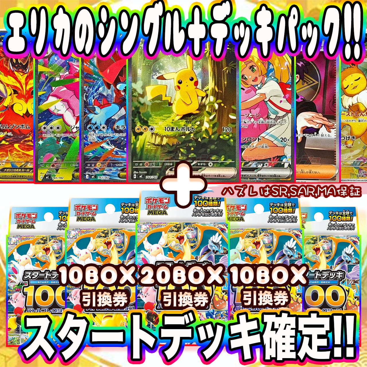 ※画像内のスタートデッキ100、20BOXセット、10BOXセットはシングルカードに引換券を貼っております。